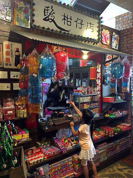 一進入餐廳,印入眼簾的是柑仔店 。酷斃了!!!沒錯,餐廳裡居然有雜貨店⋯小朋友都瘋狂了,不過也是因為這個誘因,小朋友都特別聽話吃特別多。